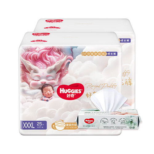 - 好奇(Huggies)铂金装成长裤婴儿拉拉裤小桃裤夏日超薄透气 XXXL码(17kg以上)25片+1片