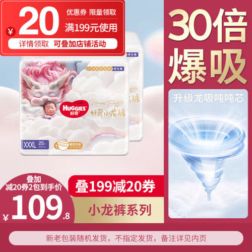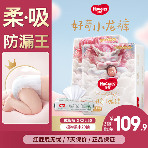 好奇小龙裤拉拉裤婴儿尿不湿超薄透气学步裤麒麟裤成长裤 成长裤XXXL50片+柔巾20抽