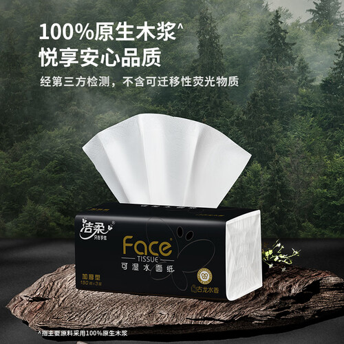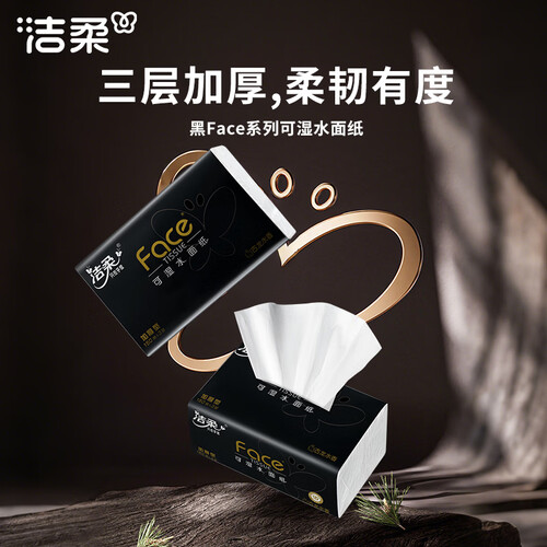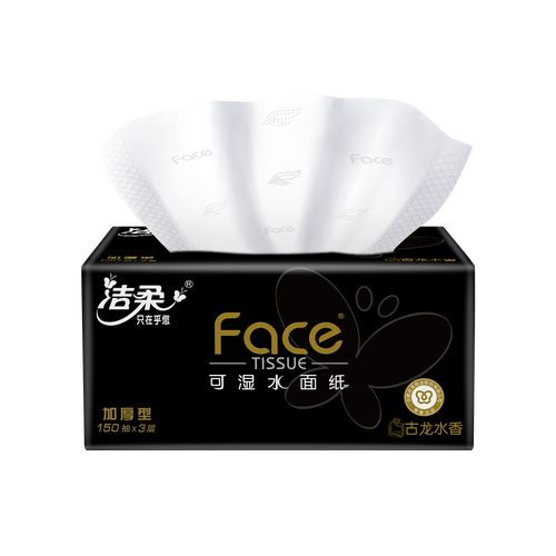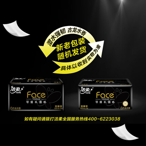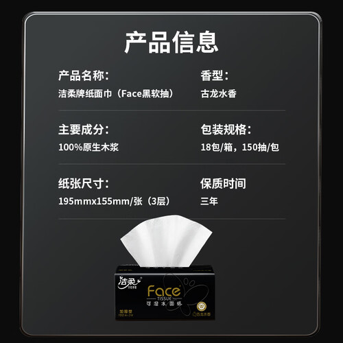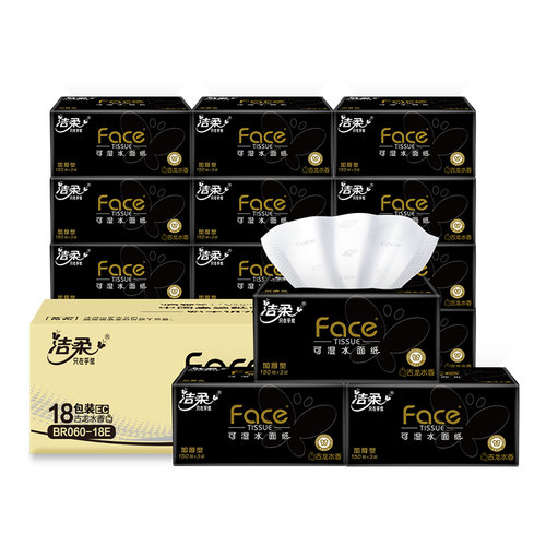 - 洁柔抽纸 黑Face古龙香水味3层150抽*18包 大规格M码 亲肤可湿水 整箱