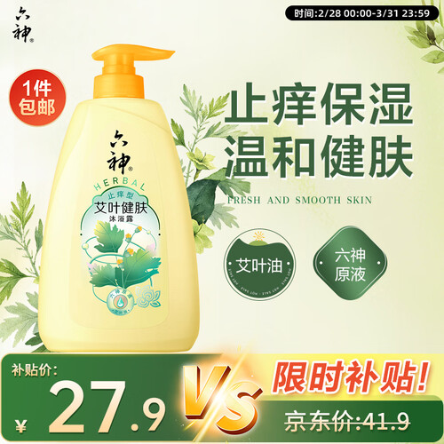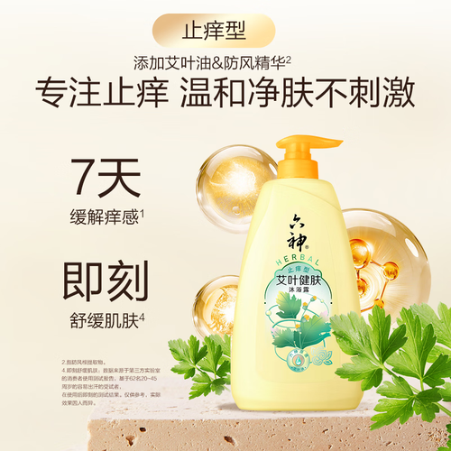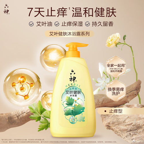 - 六神沐浴露艾叶止痒1kg 持久留香男士专用沐浴液乳女士保湿滋润家庭用