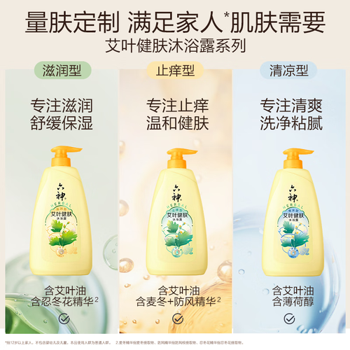 六神沐浴露艾叶止痒1kg 持久留香男士专用沐浴液乳女士保湿滋润家庭用