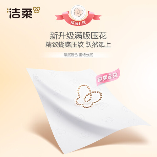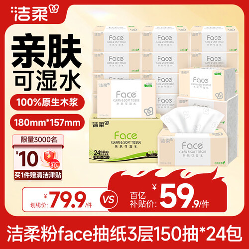 洁柔抽纸 粉face柔韧3层150抽*24包纸巾 可湿水面巾纸M码 整箱卫生纸