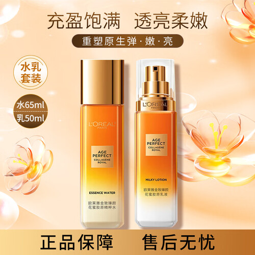 欧莱雅金致臻颜花蜜胶原水乳套装(水65ml+乳50ml) 小蜜罐中样套装旅行装