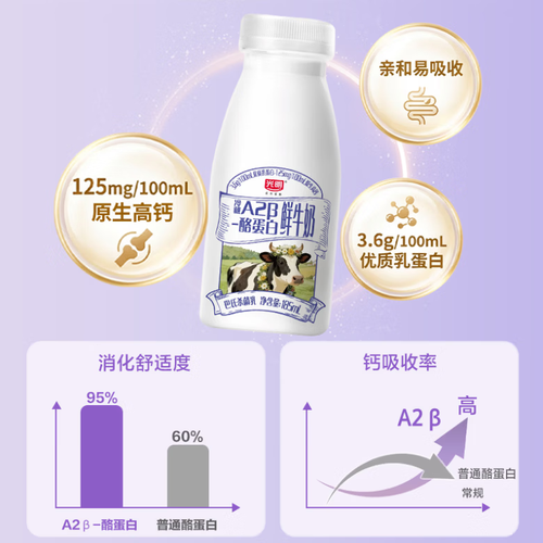 光明低温牛奶 原生高钙A2β-酪蛋白鲜牛奶185ml*6 巴氏杀菌 专属奶源