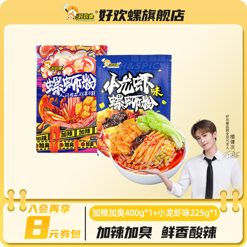 - 好欢螺螺蛳粉经典原味柳州特产袋装方便速食酸辣粉丝米粉螺丝粉夜宵小吃 加辣加臭400g+小龙虾味225g