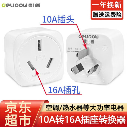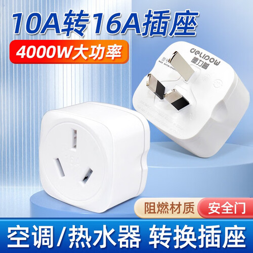- 德力普(Delipow) 10a转16a插座转换器空调热水器家用油汀等大功率电源转换插头 10a转16a插头【检测认证·用电更安全】