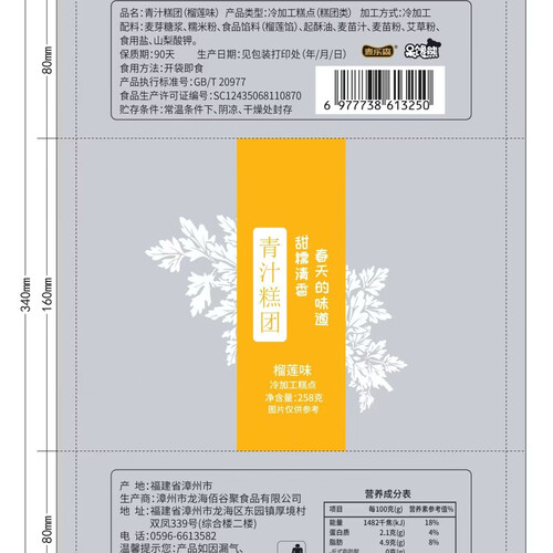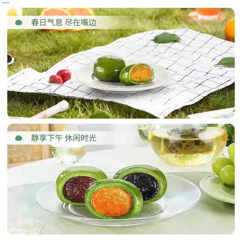 - 【江南限定】青汁糕团艾草青团蛋黄肉松豆沙糕点糯叽叽 青汁糕团258g/盒/6枚 咸蛋黄肉松味