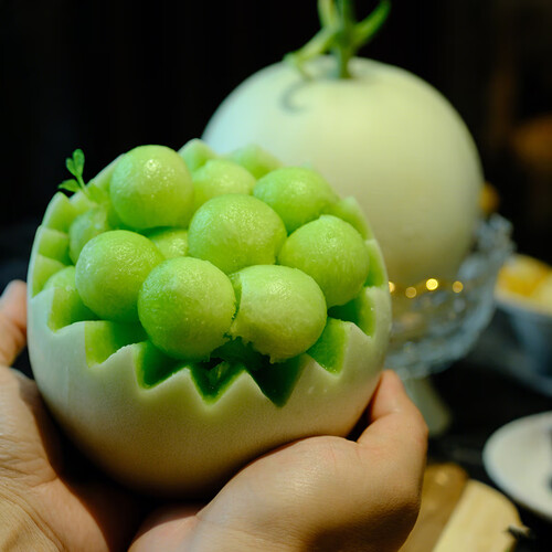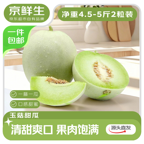 - 京鲜生海南玉菇甜瓜 净重4.5-5斤2粒装 水果源头直发包邮
