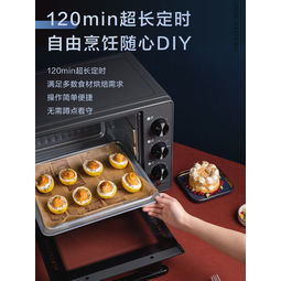 35L大容量,非常适合家庭使用,具有三层烤位,可一次烤制多个美食,还可以烤整只鸡,统统一箱搞定,满足全家人的需求。具有120分钟长通定时器,像是一般烤箱只有60分钟,如果要烤制一些肉类的美食都无需反复操作,使用更加灵活方便,即使是新手也可以灵活掌控温度。