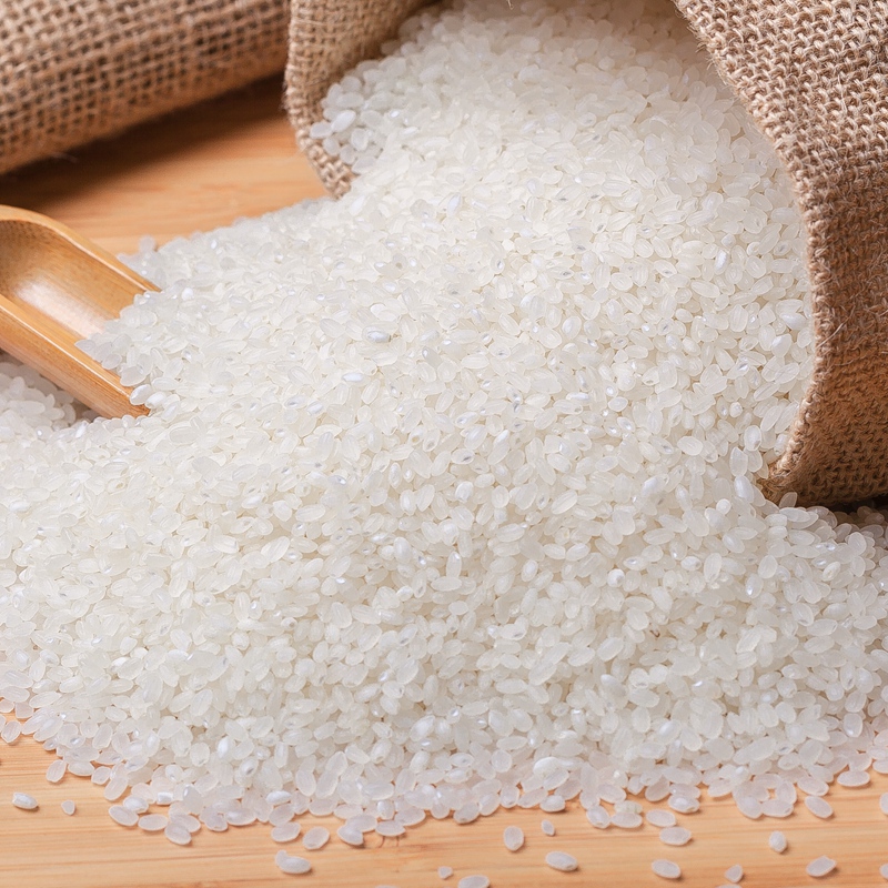 粳米颗粒呈椭圆型,粒短、外观丰满肥厚,质地硬而韧,不易碎,胀性小,粘性较强,透明度好。